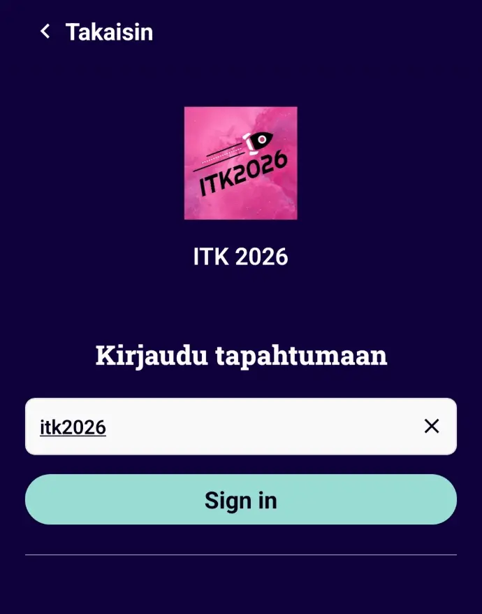 Select ITK 2025 from the Tuudo school list and log in to the event with the code itk2025.